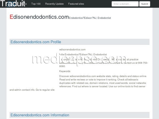 edisonendodontics.com - Endodontie?Edison?NJ, Endodontiste - Vue edisonendodontics.com Edison NJ Endodontiste M. Lawson. Nous sommes un cabinet exclusivement dédié aux soins endodontiques. N'hésitez pas à nous contacter à 908-753-6060.