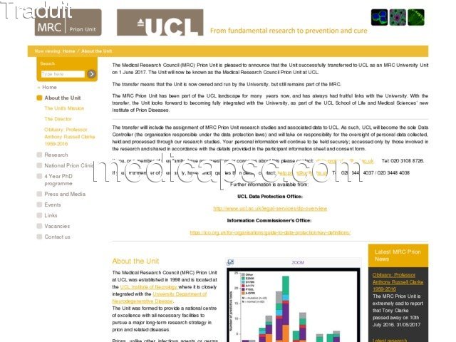 MRC de Prion de l'Unité - La MRC de Prion a été créé en 1998 et est situé à l'UCL Institut de Neurologie où il est étroitement intégré avec le Service Universitaire des Maladies Neurodégénératives. L'Unité a été formée pour fournir un centre d'excellence national avec toutes les installations nécessaires pour poursuivre une majeure à long terme de la stratégie de recherche du prion et les maladies apparentées.