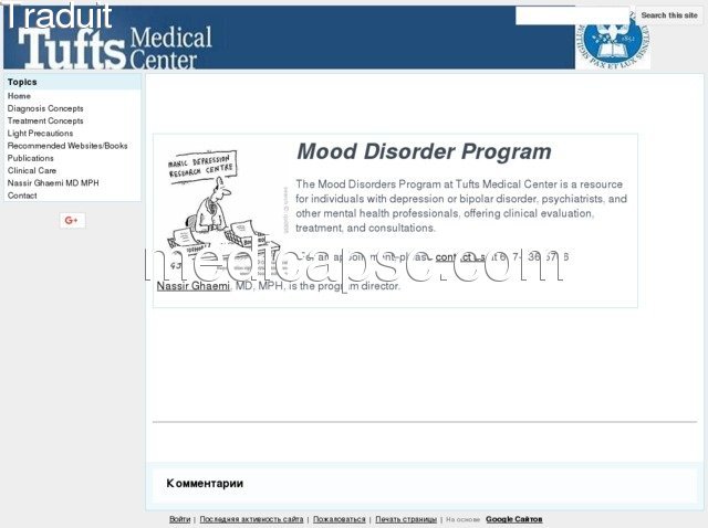 Tufts Medical Center, Les Troubles De L'Humeur Au Programme - Les Troubles de l'Humeur du Programme fait partie du Département de Psychiatrie de l'université Tufts Medical Center. Nous offrons actuellement un traitement clinique et de mener des recherches dans un certain nombre d'études concernant les troubles bipolaires et les troubles de l'humeur